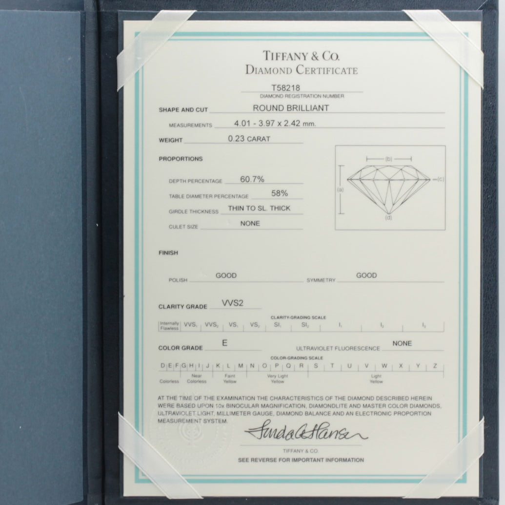 Tiffany & Co. Verlobungsring Platin 950- Gr.53 - Box & Zertifikat 0,23 ct - VS2